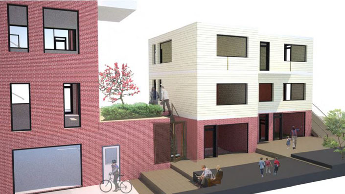De oprichting van een stedelijke enclave in dit project verhoogt de veiligheid, de sociale samenang en leefbaarheid van een gecombineerd woonblok langs de Oranjeboomstraat.
